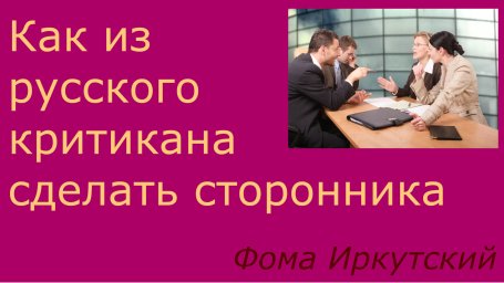 Как сделать критикана сторонником Русское мировоззрение предполагает постоянную борьбу за справедливость, побочным результатом которой является критика окружающих людей. Майор Махони предлагает несложную технологию переманивания критика в сторонники. социологиятехнологии — 26.02.2019 01:38 2.27K mahony Комментарии Написать комментарий Нет комментариев. Ваш будет первым! Ваше имя Отправить Отменить Предпросмотр