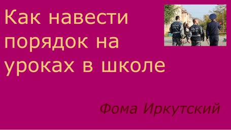 Как навести порядок на уроках в школе Как навести порядок на уроках в современной школе. Простой и эффективный способ при помощи школьных дружин предлагает майор Махони технологии — 03.04.2019 00:41 2.16K mahony Комментарии Написать комментарий Нет комментариев. Ваш будет первым! Ваше имя Отправить Отменить Предпросмотр