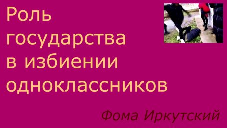 Роль государства в избиении одноклассников Избиение и третирование одноклассников для Ютуба сейчас в моде. Снимают со смаком, гордятся своими успехами. Майор Махони полагает, что и государство с его системой школьного воспитания по ФГОС приложило свою руку к этому явлению педагогикауправление — 17.02.2020 23:36 2.85K mahony Комментарии Написать комментарий Нет комментариев. Ваш будет первым! Ваше имя Отправить Отменить Предпросмотр
