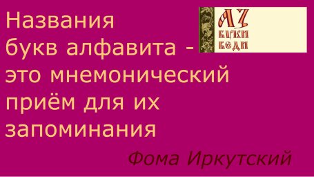 Что же такое Азъ Буки Веди Наименования букв древнего русского алфавита является мнемоническим приёмом для лучшего запоминания порядка букв в нём по мнению майора Махони русский язык — 02.03.2019 17:29 2.24K mahony Комментарии Написать комментарий Нет комментариев. Ваш будет первым! Ваше имя Отправить Отменить Предпросмотр